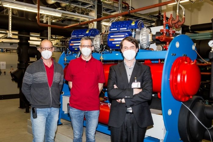 Vonn l.n.r.: Ing. Markus Plunger (technischer Leiter im Krankenhaus Braunau), Ing. Hubert Ober (Gebäudeleittechnik Krankenhaus Braunau) und Erwin Windischbauer, MAS (Geschäftsführer Krankenhaus Braunau).(c) Krankenhaus Braunau