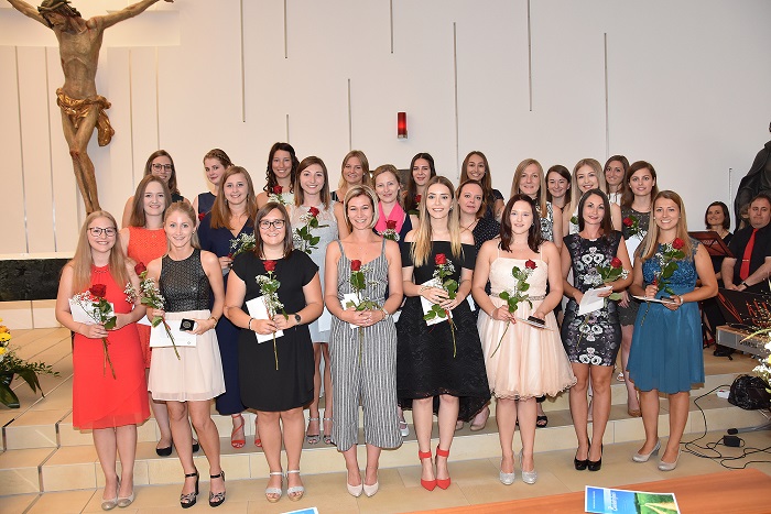 25 glückliche Absolventinnen der Fachhochschule für Gesundheits- und Krankenpflege nach dem Festakt in der Krankenhauskapelle. Foto © Krankenhaus Barmherzige Schwestern Ried