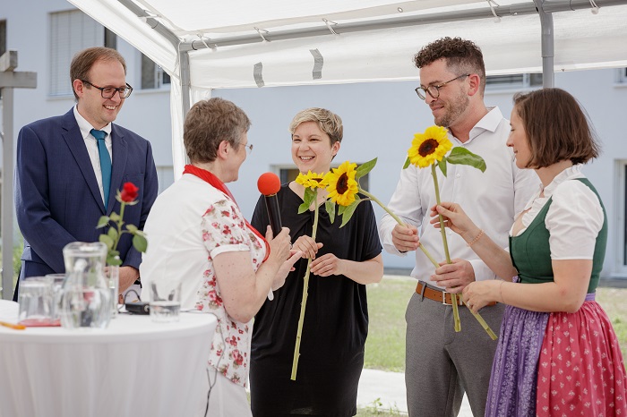 Das neue Praxiszentrum Auhofstraße 185 wurde vor Kurzem als Teil des Gesundheitsparks St. Josef Wien feierlich eröffnet. Im Bild (v.l.n.r.): Mag. Andreas Waldsich (Geschäftsführer St. Josef Krankenhaus Wien), Sr. Maria Schlackl, SDS (Salvatorianerinnen) und die ersten Mieter Dr. Bettina Reismüller, Dr. Bernhard Fahrner und Dr. Marlies Haslinger (Gruppenpraxis für Kinder- und Jugendheilkunde „Doctopus“). Fotocredit: St. Josef Krankenhaus Wien