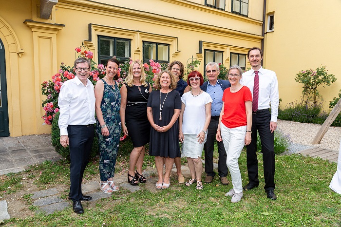 V.l.n.r.: Mag. Peter Ausweger (Gesamtleiter Barmherzige Brüder Linz), Christine Springer (Mutter eines betroffenen Kindes), Sandra Schneider (Leitende Sehfrühförderin Barmherzige Brüder Linz), Brigitte Ruttmann (ehem. Leitende Sehfrühförderin), OA Dr. Liselotte Keintzel (Fachärztin für Augenheilkunde Barmherzigen Brüdern Linz), Dir. Prof. Irene Mühlbach, BEd BEd MAS MSc, (Landesschulzentrum Hör- u. Sehbildung, Michael Reitter Landesschule), Prof. Dr. Siegfried Priglinger (Gründer Sehschule und Sehfrühförderung), Frau Mag. Ruth Resch (Direktorin der Fachhochschule Salzburg für Orthoptik), OA Dr. Michael Brandecker