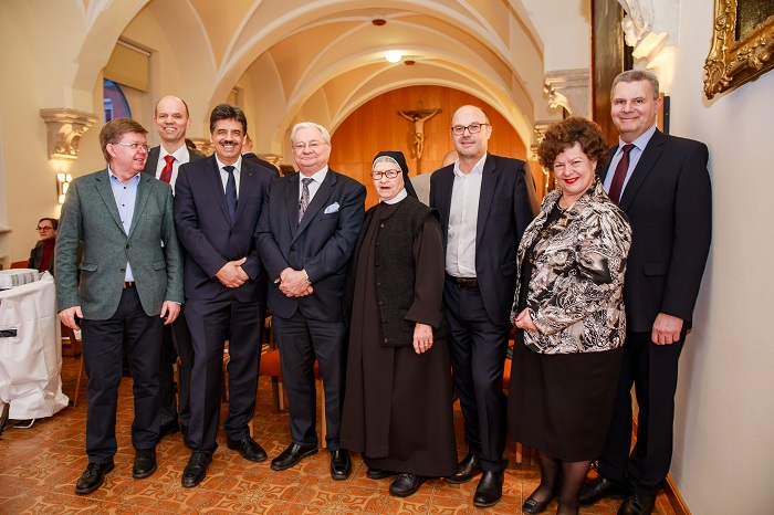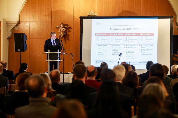 Generaloberin Mutter Bonaventura Holzmann betonte in ihrem Grußwort, das von Mutter Consolata Maderbacher verlesen wurde, die auf dem seit 1690 in Graz bestehenden Engagement der Elisabethinen aufbauende verantwortungsvolle Mitwirkung an einer zukunftsfitten Gesundheitsversorgung in der Steiermark: „Diese Verantwortung für die Menschen in unserer Region führt uns besonders auch heute dazu, uns aktuellen Veränderungen aktiv und zupackend zu stellen. Gemeinsam mit den Barmherzigen Brüdern gestalten wir daher die Spitalskooperation Ordenskrankenhaus Graz-Mitte. Mit der Inbetriebnahme der Station für Akutgeriatrie und Remobilisation im kommenden April und der auch damit verbundenen Sorge für ein gelingendes Leben besonders im Alter gehen wir einen wichtigen Schritt zum Ordenskrankenhaus Graz-Mitte. Wir bauen damit – im wahrsten Sinn des Wortes – an einem besonderen Ort weiter, um auch die nächsten 330 Jahre den uns anvertrauten Menschen möglichst gut helfen zu können.“