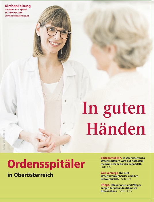 Die Beilage „In guten Händen“ (im Bild der Umschlag) ist eine Koproduktion der Ordensspitäler Oberösterreichs und der Kirchenzeitung Linz.