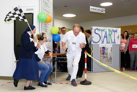 “Wir möchten unsere Mitarbeiter mit dieser lustigen Veranstaltung zum vermehrten Benützen der Treppe anstelle des Lifts animieren und auch unseren Patienten mit gutem Beispiel vorangehen”, erklärt Ludwig Gold, Geschäftsführer im Kardinal Schwarzenberg Klinikum. “Der Lauf findet alle zwei Jahre statt, alle Teilnehmer und die zahlreichen Zuschauer haben viel Spaß und bewegen sich aktiv für einen guten Zweck.” Übrigens: Sieger des Treppenlaufs ist nicht der Teilnehmer mit der schnellsten Zeit, sondern derjenige, der mit seiner Leistung am nächsten an der Durchschnittszeit aller Teilnehmer (4:06,78) liegt. Heuer war dies Markus Stöckl aus dem Team der Klinikums-Küche mit einer Zeit von 4:06,82.