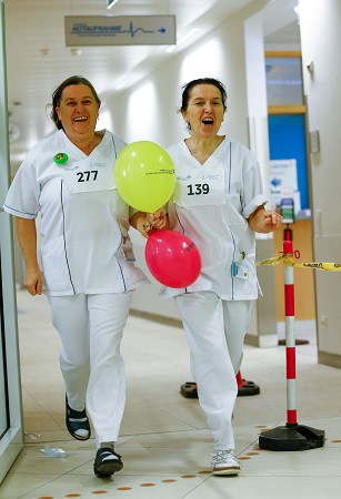 308 Mitarbeiterinnen und Mitarbeiter aus allen Berufsgruppen des Schwarzacher Klinikums haben am Treppenlauf 2017 teilgenommen.