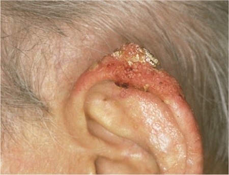 Weißer Hautkrebs: Vorwiegend Nase, Ohr und Wange sind vom weißen Hautkrebs betroffen.