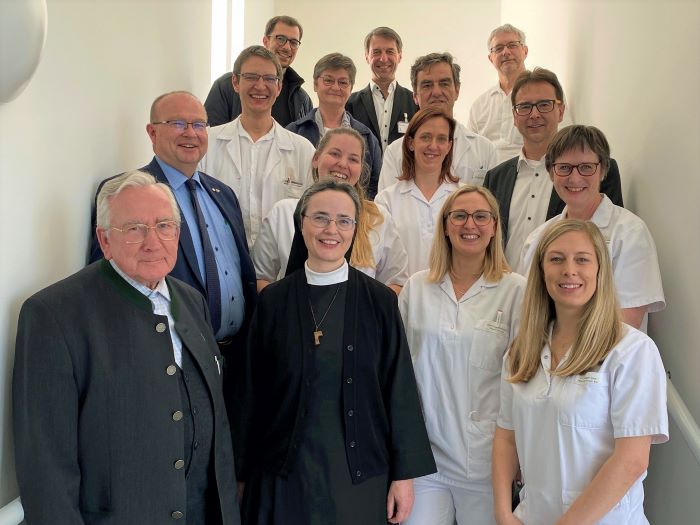 Neben dem Team der Palliativstation und Führungskräften aus dem Krankenhaus waren bei dem Termin auch Generalvikarin Sr. M. Teresa Hametner von den Franziskanerinnen Vöcklabruck, Msgr. Stefan Hofer, Pfarrer GR Mag. Gert Smetanig, Pfarrvikar Kaplan Philipp Faschinger und Braunaus Bürgermeister Mag. Johannes Waidbacher anwesend. (c) Krankenhaus Braunau