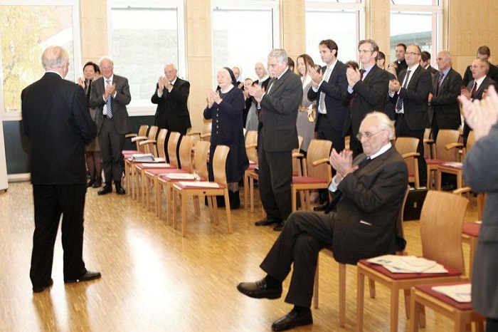 35 Jahre im Dienst der Ordensspitäler. "Standing Ovations" für P. Leonhard Gregotsch bei der Jahresversammlung der Arbeitsgemeinschaft der Ordensspitäler im Jahr 2012. (c) ÖOK