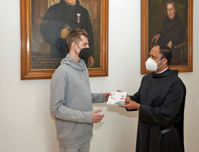 Fast 8.000 Mitarbeitende in allen österreichischen Einrichtungen der Barmherzigen Brüder werden für den Klimaschutz sensibilisiert: Sie erhalten von P. Provinzial Saji Mullankuzhy das Buch "Kleine Gase, große Wirkung - der Klimawandel" von David Nelles und Christian Serrer.