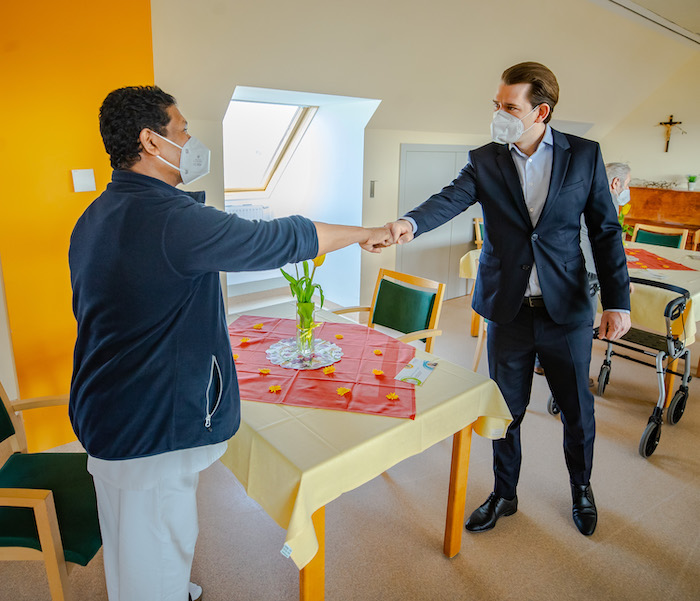 Bundeskanzler Sebastian Kurz und Vizekanzler Werner Kogler haben am Samstag das Krankenhaus der Barmherzigen Schwestern und das angeschlossene Pflegehaus in Wien-Mariahilf besucht und den Mitarbeitern im Pflege-, Gesundheits- und Sozialbereich ihren Dank für ihre Arbeit während der Corona-Pandemie ausgesprochen.