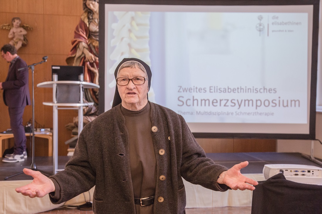 Am 17. Oktober diskutierten 120 TeilnehmerInnen beim 2. Elisabethinischen Schmerzsymposium über Perspektiven und Herausforderungen für eine multidisziplinäre Schmerztherapie.„Jeder Mensch ist einzigartig. Sein Lebensweg ist ebenso unverwechselbar wie seine Krankengeschichte“ so Sr. Bonaventura Holzmann, Generaloberin des Konvents und Geschäftsführerin. Facebook-Live-Video