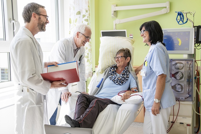 Jeweils vier Stunden, dreimal pro Woche, verbringen Dialysepatienten im Klinikum Wels-Grieskirchen. Das Dialysegerät übernimmt dabei jene Aufgabe, welche eigentlich ihre Nieren machen müssten: Es reinigt das Blut, entzieht dem Körper die Giftstoffe und überflüssiges Wasser. Dialyse ist für Patienten mit terminaler Niereninsuffizienz überlebensnotwendig. Seit Mai 2018 stehen auf der Dialysestation in Wels nun fünf weitere, somit insgesamt 25 Dialyseplätze für Patienten zur Verfügung.