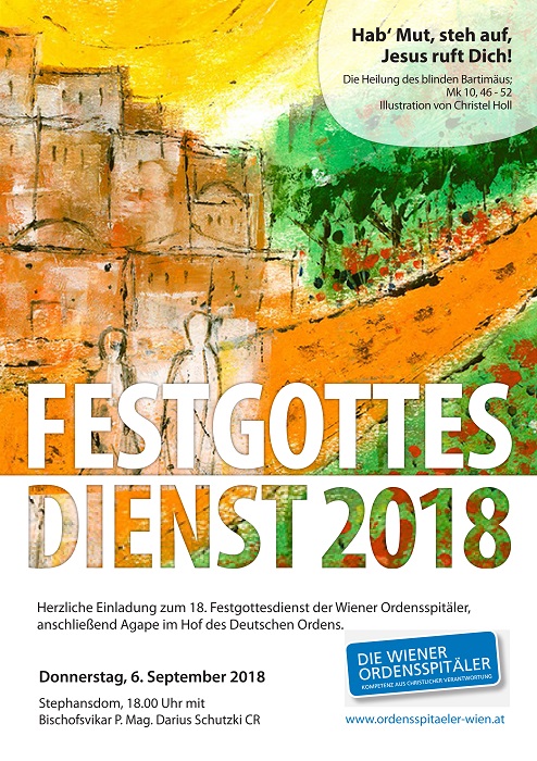 Die Wiener Ordensspitäler laden am Donnerstag, 6. September 2018, um 18 Uhr in den Stephansdom zum traditionellen Festgottesdienst ein. Bischofsvikar P. Darius Schutzki vom Orden der Resurrektionisten ist Hauptzelebrant der Gottesdienstfeier, anschließend gibt es eine Agape im Hof des Deutschen Ordens.